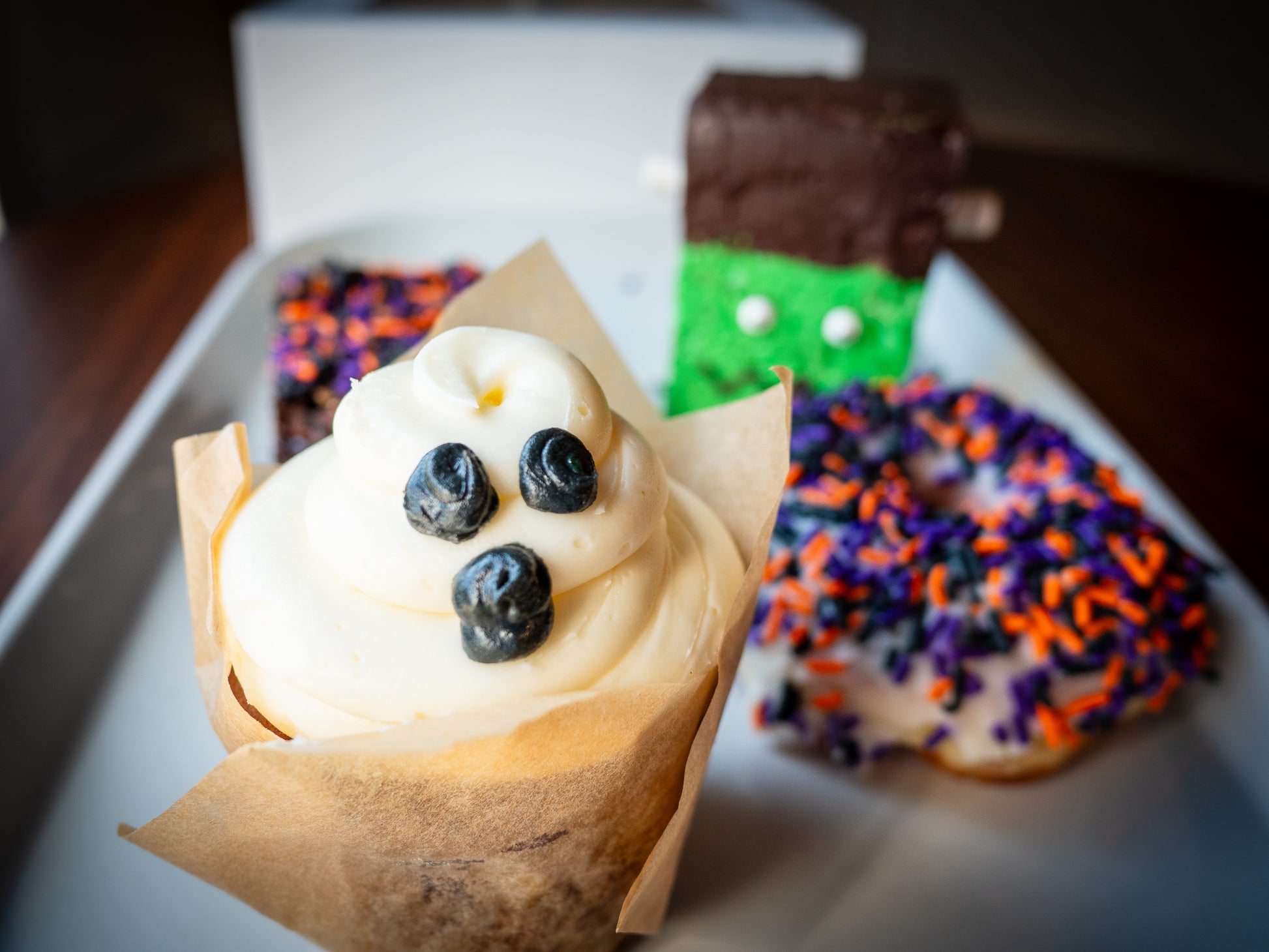 1 Ghost-inspired pumpkin cupcake with cream cheese frosting